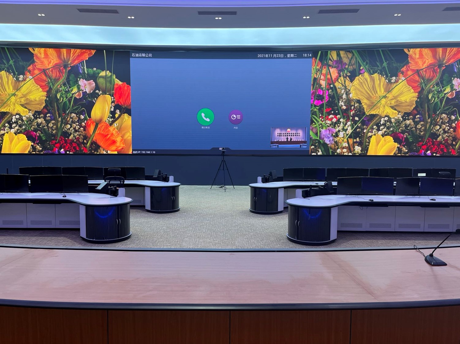 中國石油集團(tuán)安全環(huán)保技術(shù)研究院1層視頻會議室創(chuàng)新型的運(yùn)用0.93mmLED顯示屏,不僅滿足單位召開視頻會議室使用,同時(shí)可用于超高分圖像的展示工具,對研究院研發(fā)團(tuán)隊(duì)成果展示、實(shí)驗(yàn)過程分析提供保障。同時(shí)對現(xiàn)有視頻會議功能進(jìn)行升級,由原來模擬、標(biāo)清視頻會議形式升級為高清、4K會議,